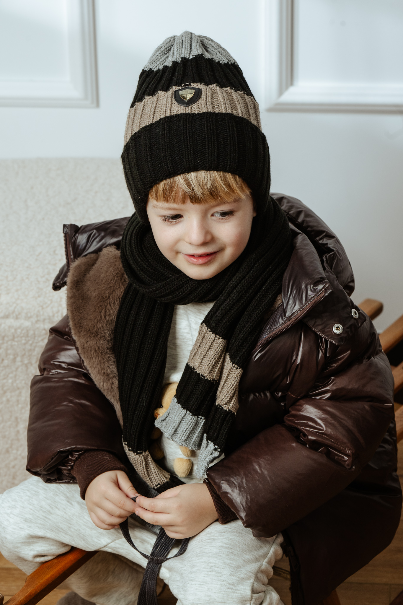 Komplet RUFUS to stylowy i praktyczny zestaw dla chłopca na zimę. W skład kompletu wchodzi ciepła czapka z naszywką oraz dopasowany szal. Czapka posiada miękką bawełnianą podszewkę, która zapewnia komfort i skuteczną ochronę przed chłodem. Szal jest przyjemny w dotyku i idealnie komponuje się z czapką, tworząc spójny, modny zestaw na zimowe dni.