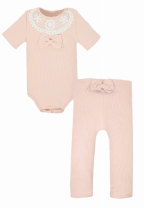 Komplet niemowlęcy THELMA body i leginsy Jasny róż