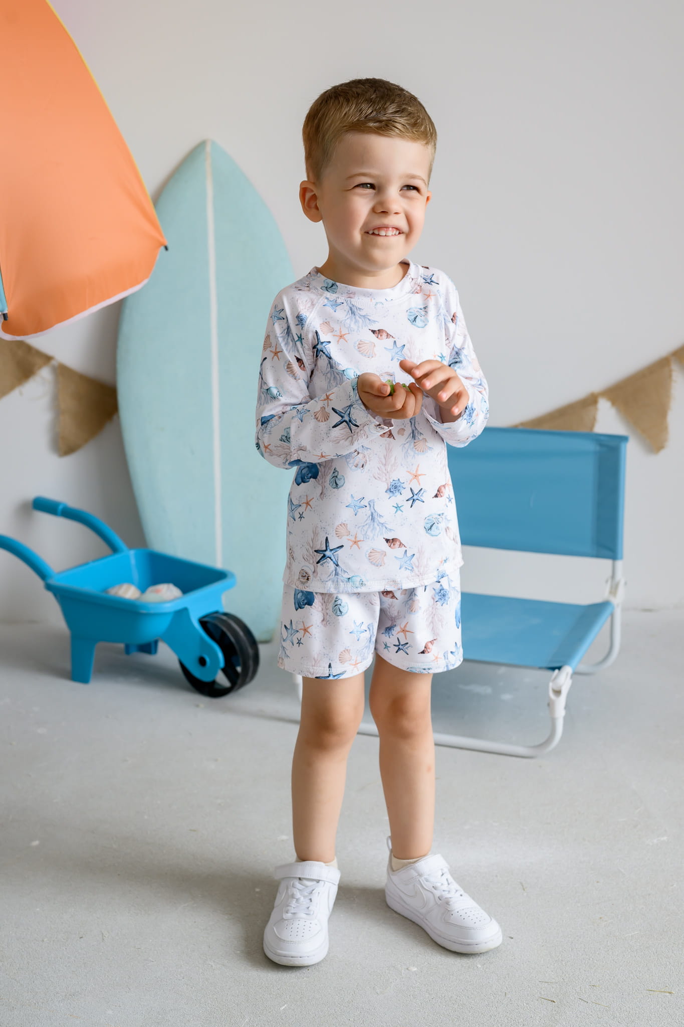 Bezpieczna zabawa w słońcu? Z naszym dwuczęściowym kostiumem to możliwe! Zestaw składa się z wygodnej bluzki z krótkim rękawem i dopasowanych spodenek, wykonanych z elastycznego, szybkoschnącego materiału pokrytego powłoką ochronną UV SPF 50+.