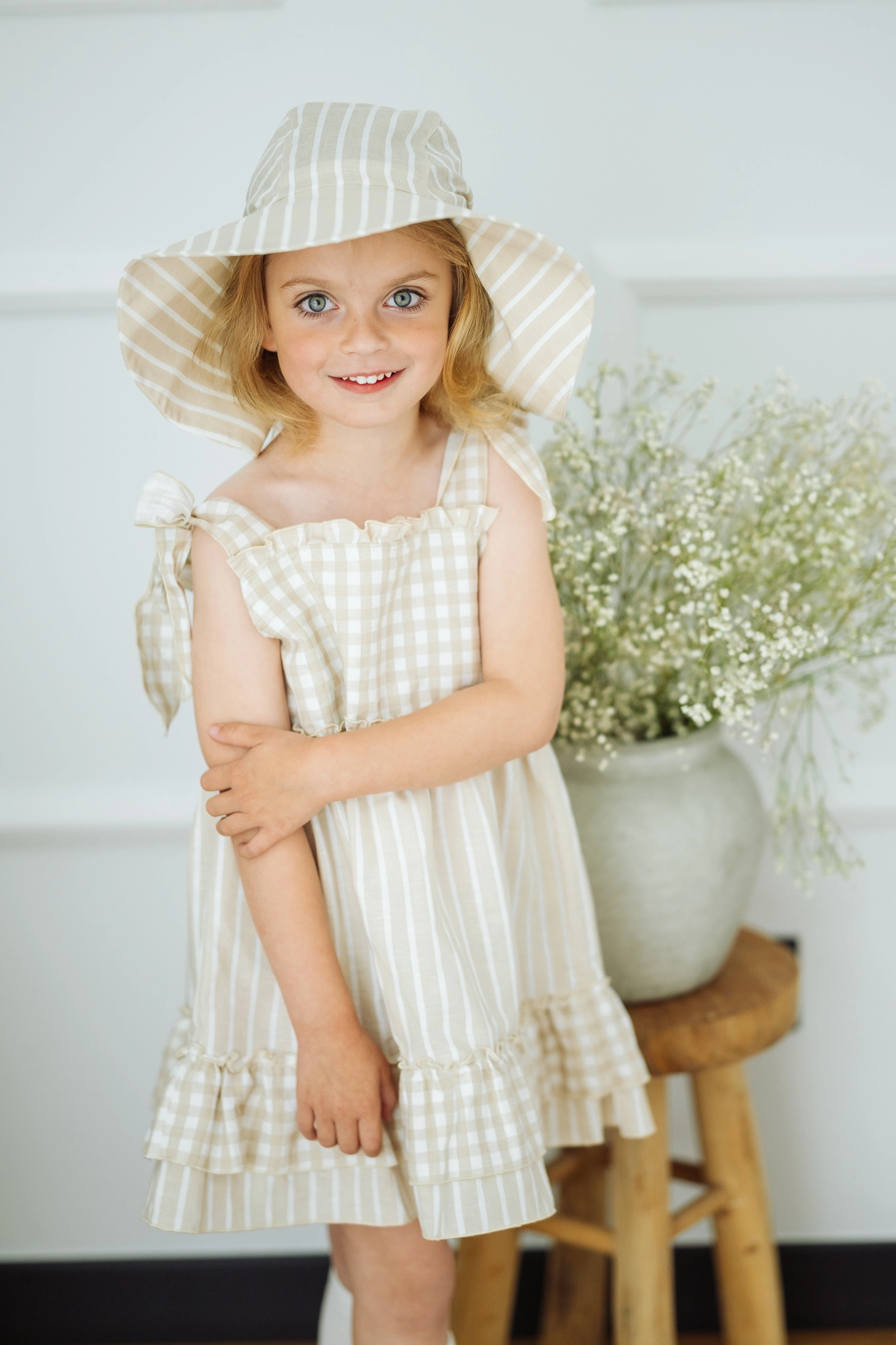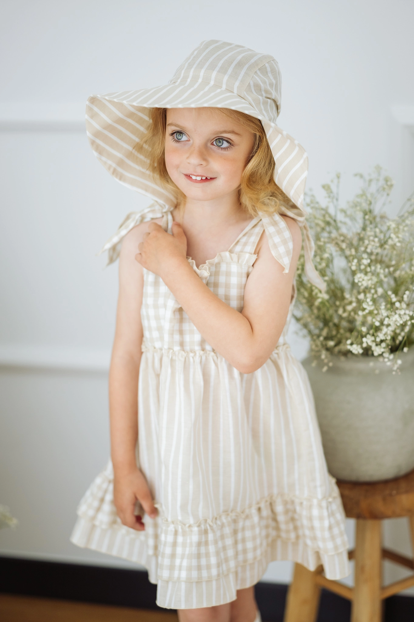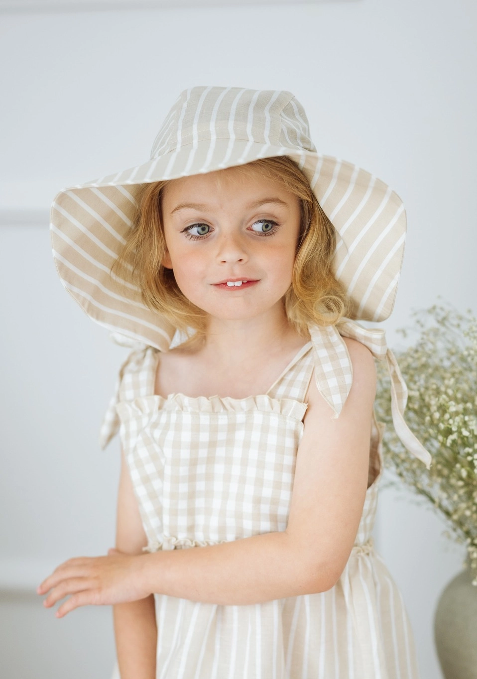 Lniany kapelusz z dużym rondem dla dziewczynki BAMBEA beżowy