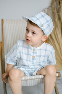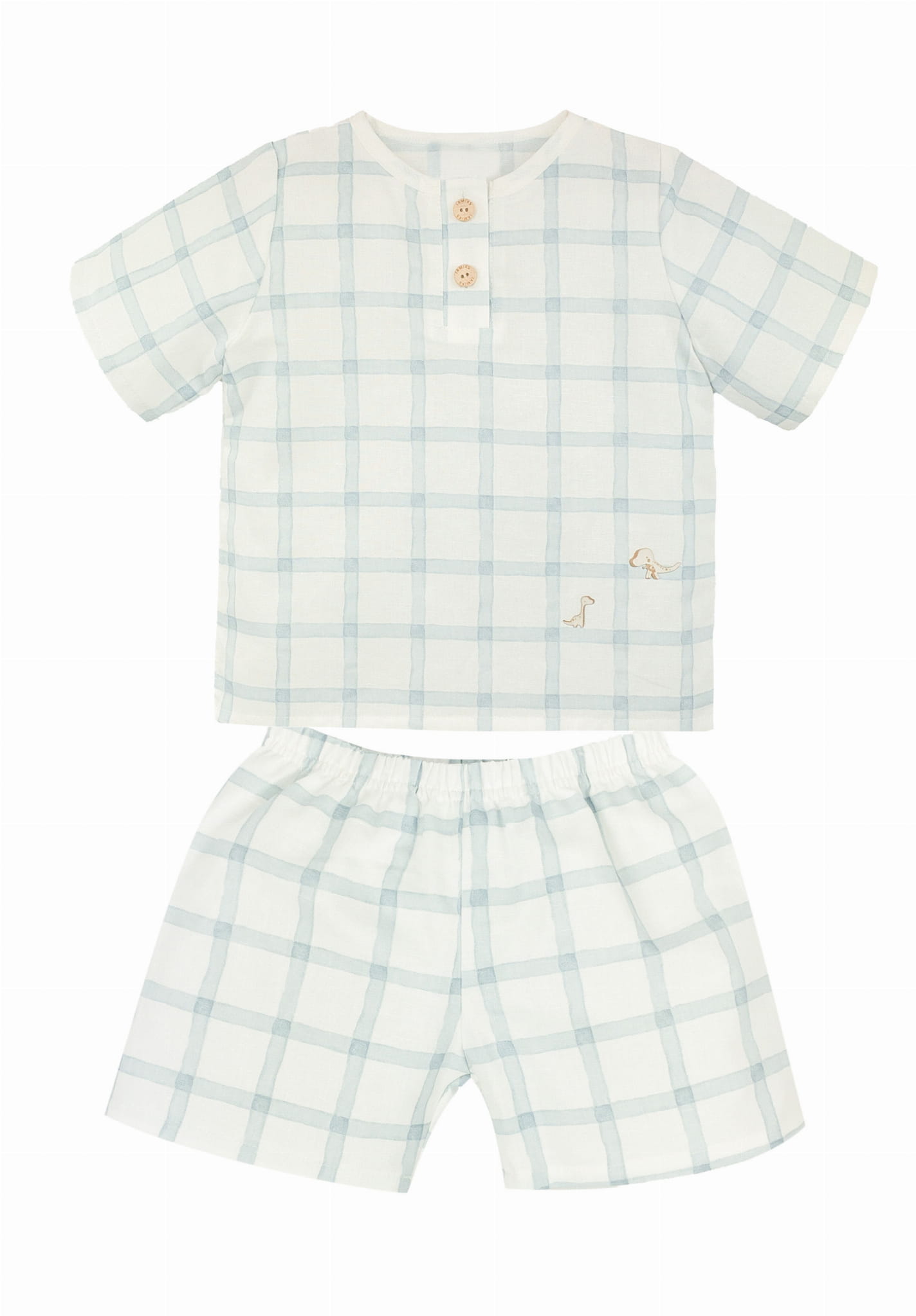 Bluzka z dwoma guzikami, szorty z gumką. Klasyczny i stylowy.