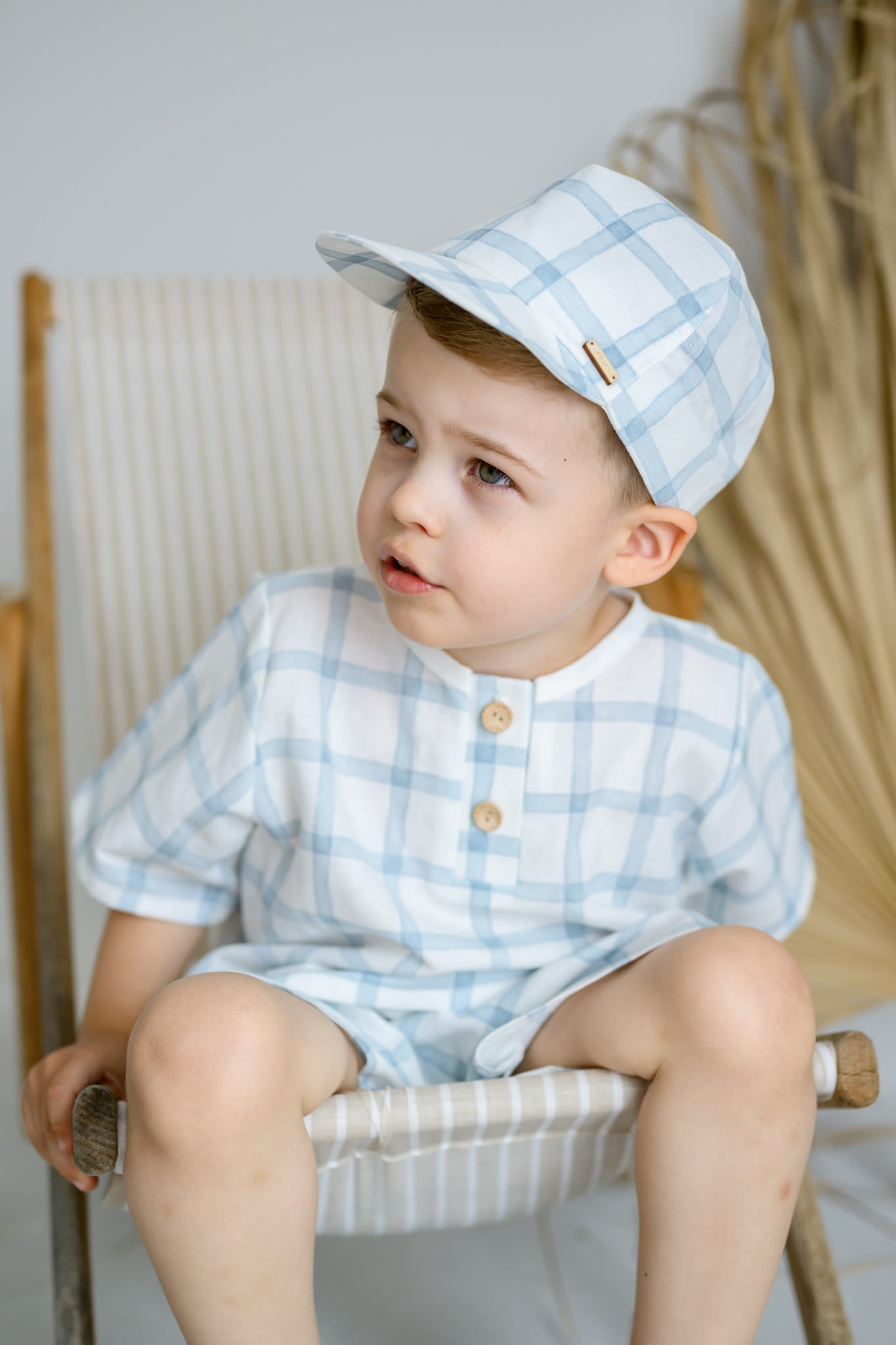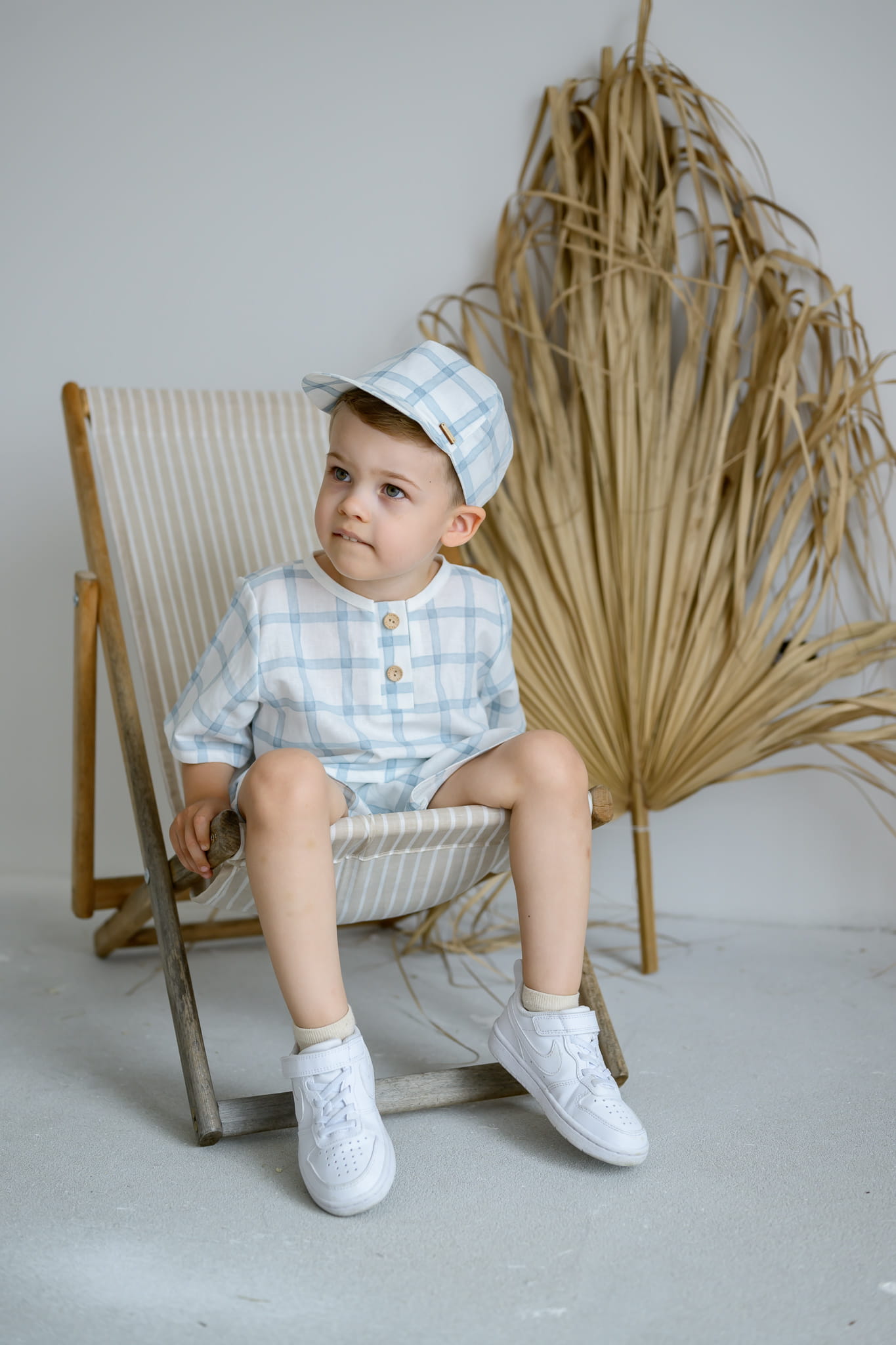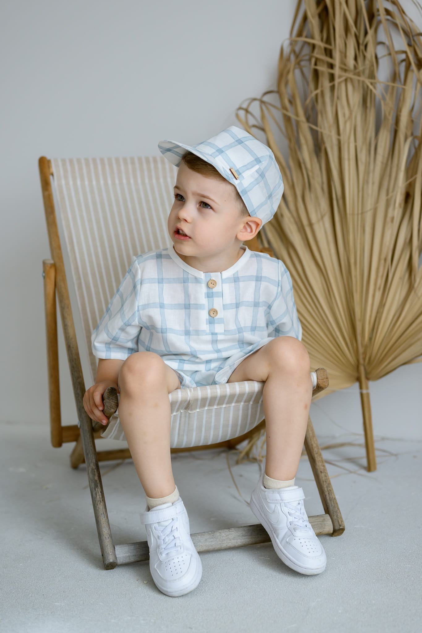 Lniany komplet chłopięcy na lato ROMEO bluzka i szorty Turkus