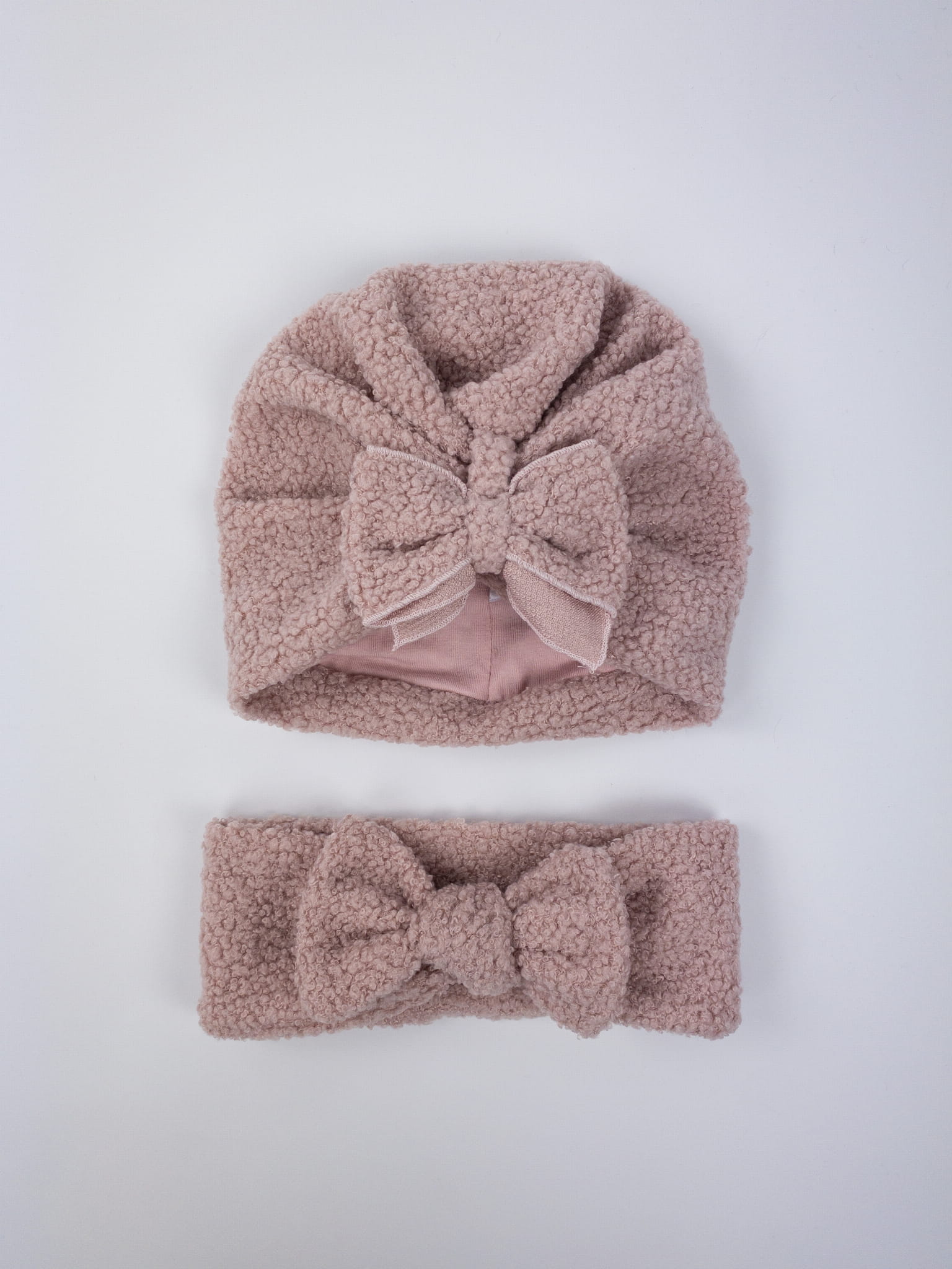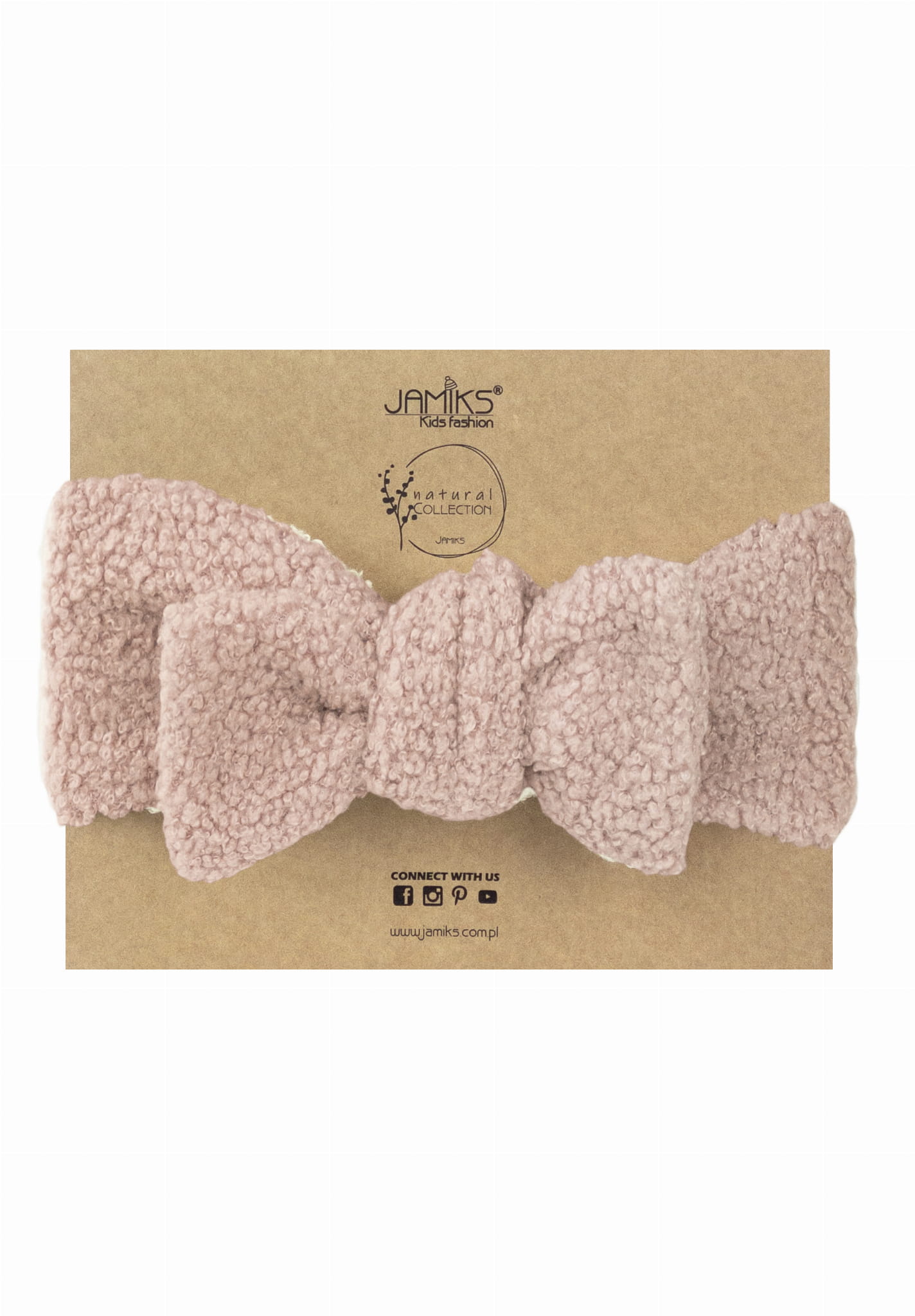 Opaska boucle z kokardą LARA pudrowy róż