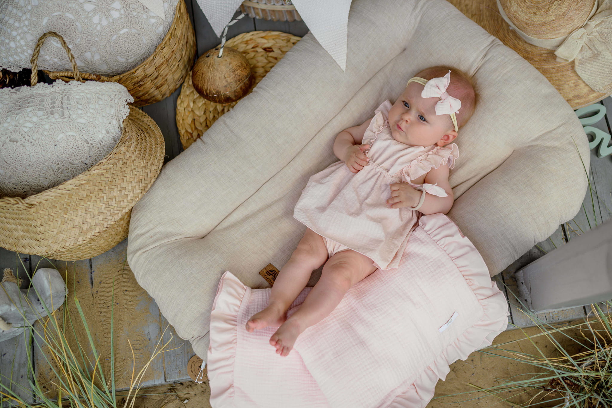 Bezpieczna w kontakcie ze skórą dziecka, idealnie układa się na głowie. Opaska została wymyślona i stworzona przez nasz zespół projektowy.
