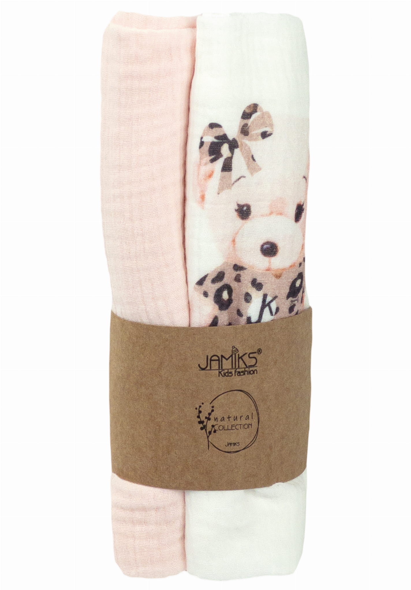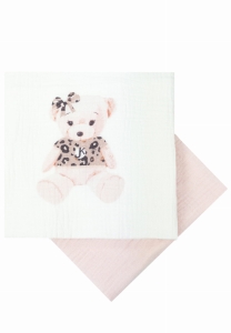 Pieluszki muślinowe organic ASTRID misiu róż+j.morela 2-pack