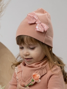 Prążkowana dziewczęca czapka z kokardą BIBIANA brzoskwiniowa
