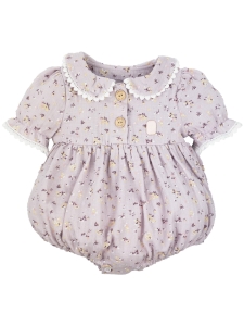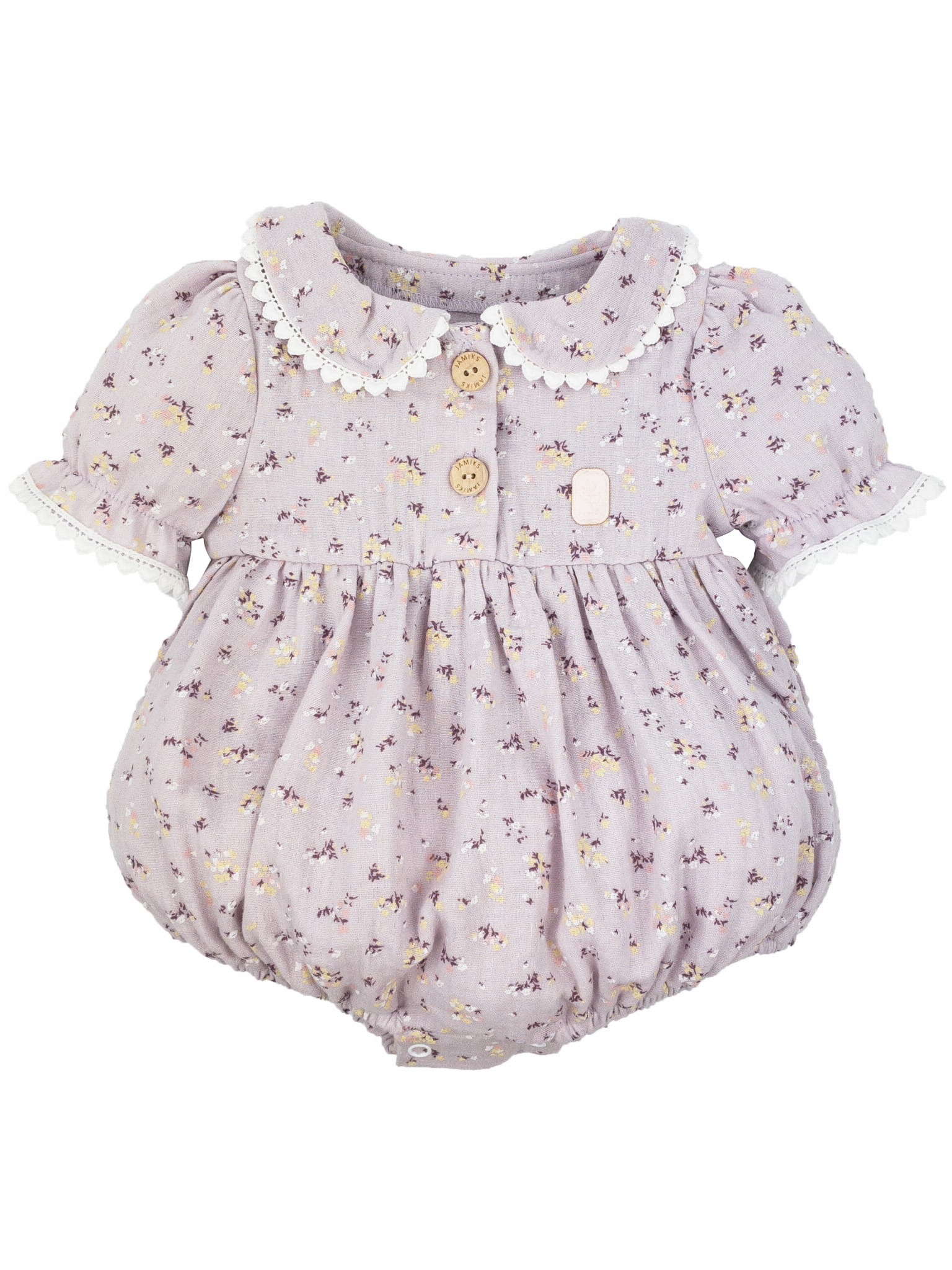 Rampers muślinowy dla dziewczynki SALAMANKA krótki rękaw lawendowy+żółty