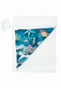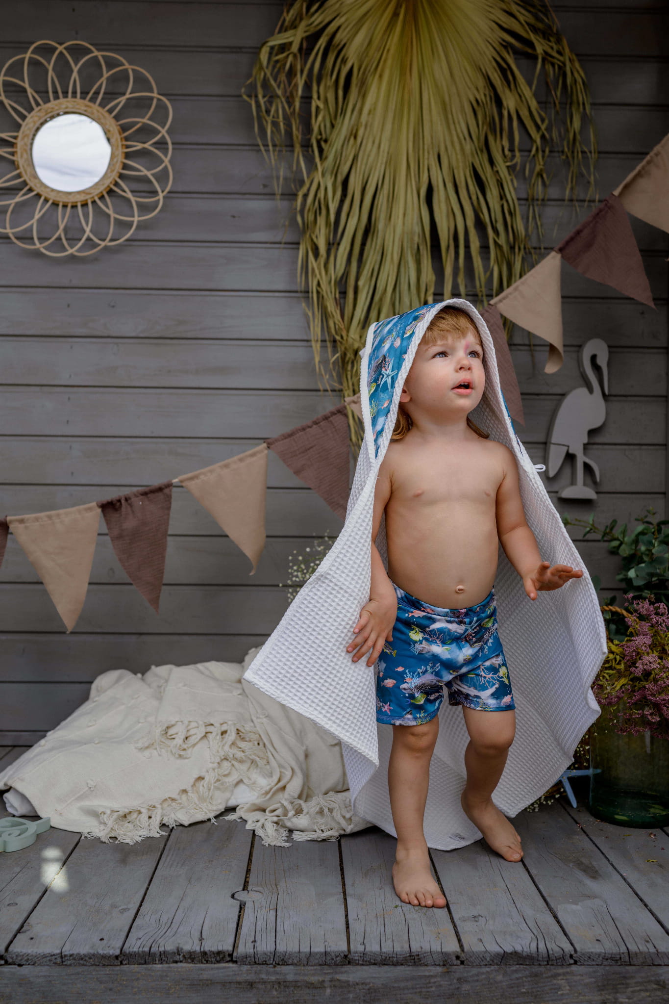 Bawełniany ręcznik kąpielowy z kapturkiem na głowę.