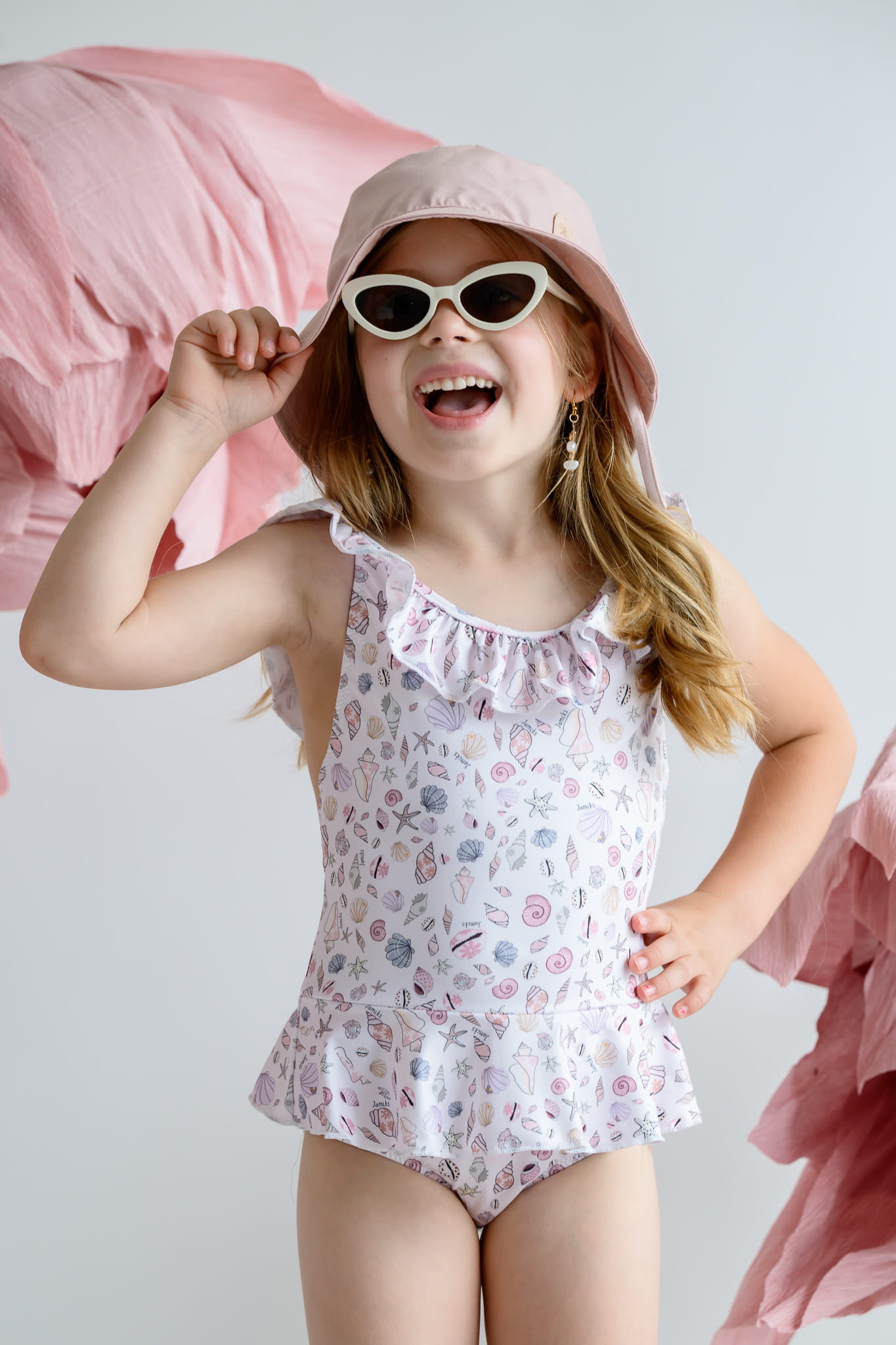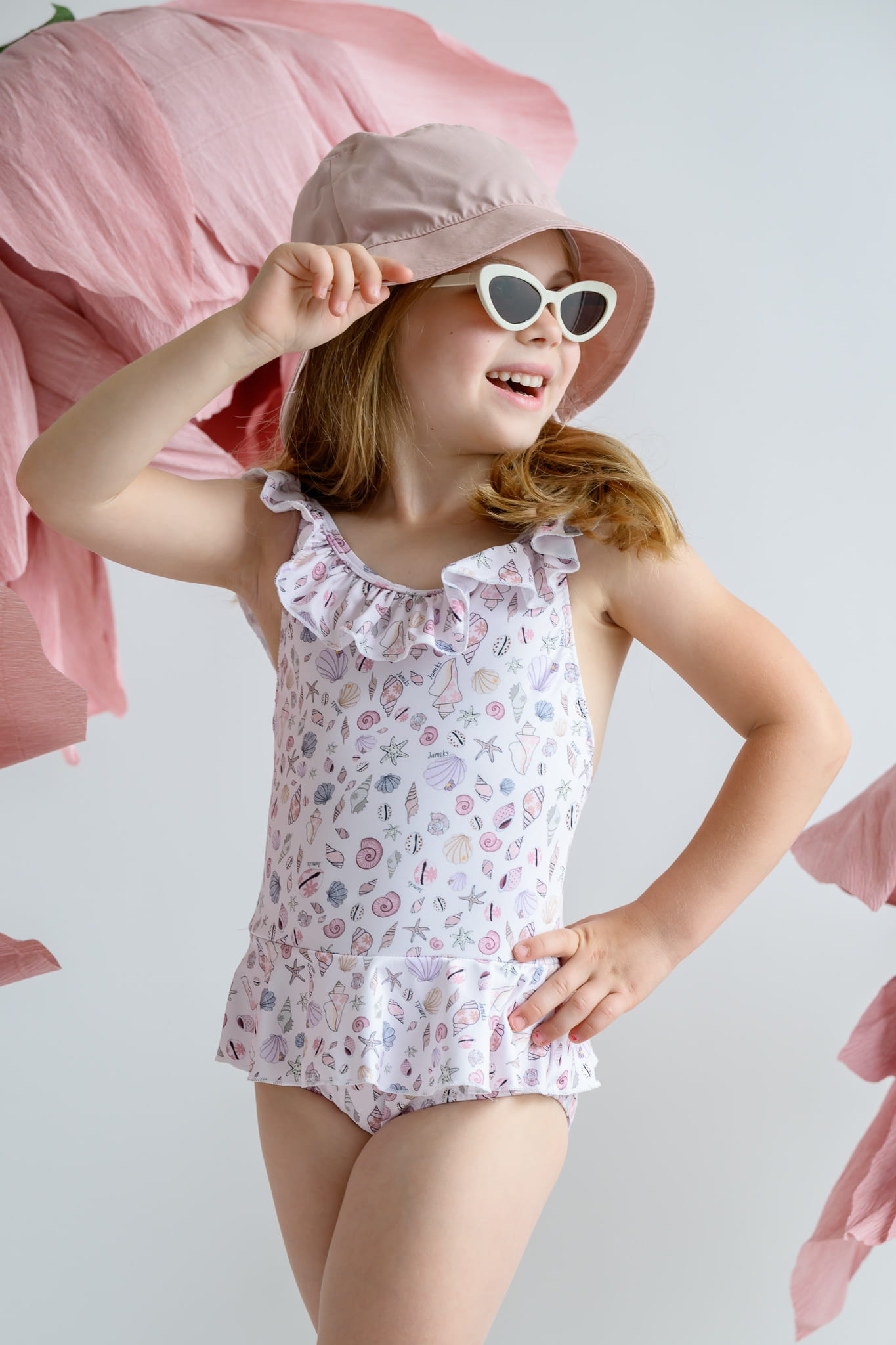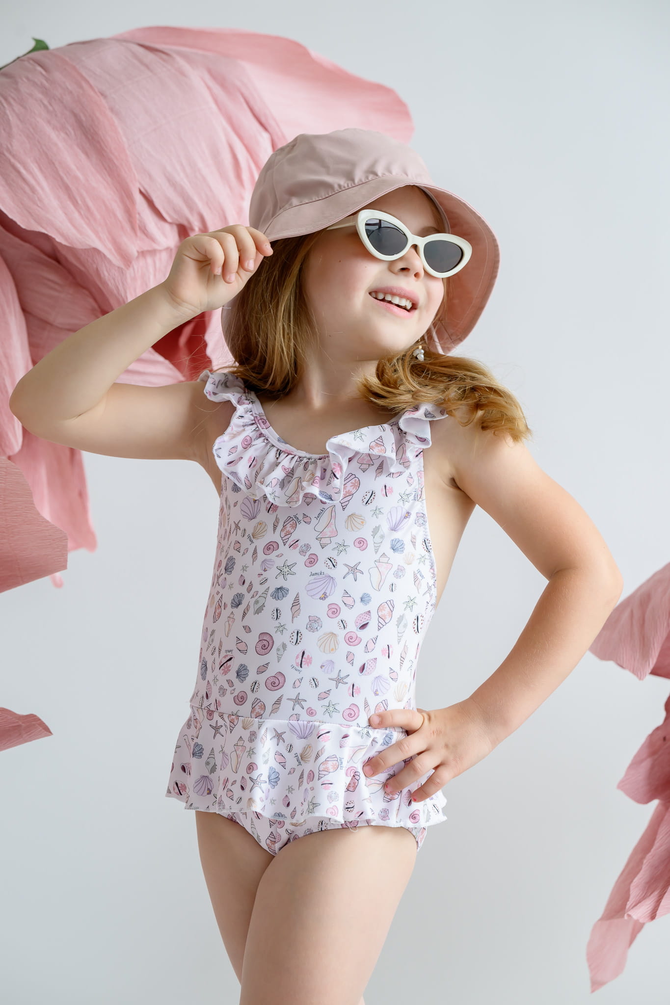 Piękny i funkcjonalny kostium kąpielowy dla dziewczynki. Zdobiony falbaną oraz modnym, stworzonym przez nasz zespół projektowy nadrukiem. Materiał pokryty został specjalistyczną powłoką z ochroną SPF 50. Dzięki temu twoje dziecko będzie przygotowane na cały dzień zabawy w wodzie