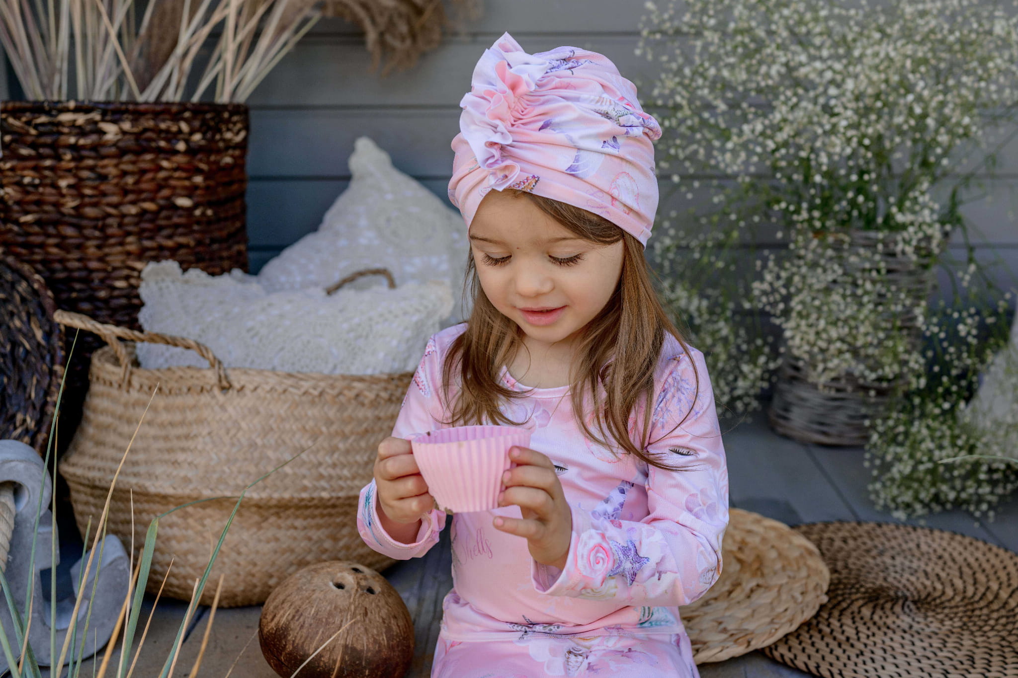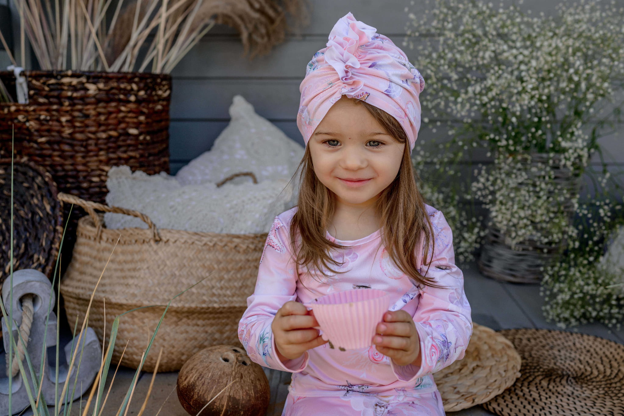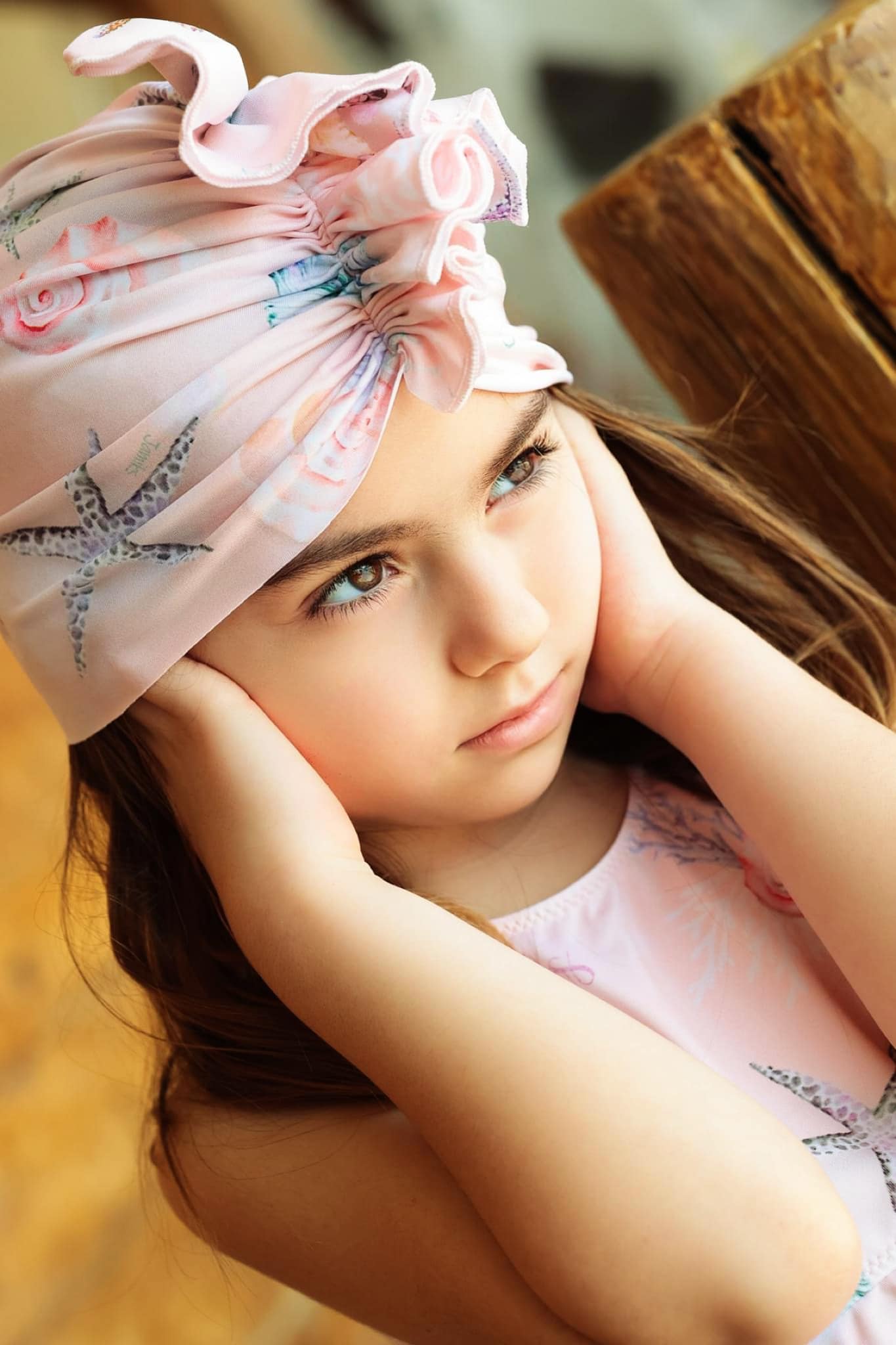 Turban jest bardzo elastyczny, pięknie układa się na głowie dziecka.