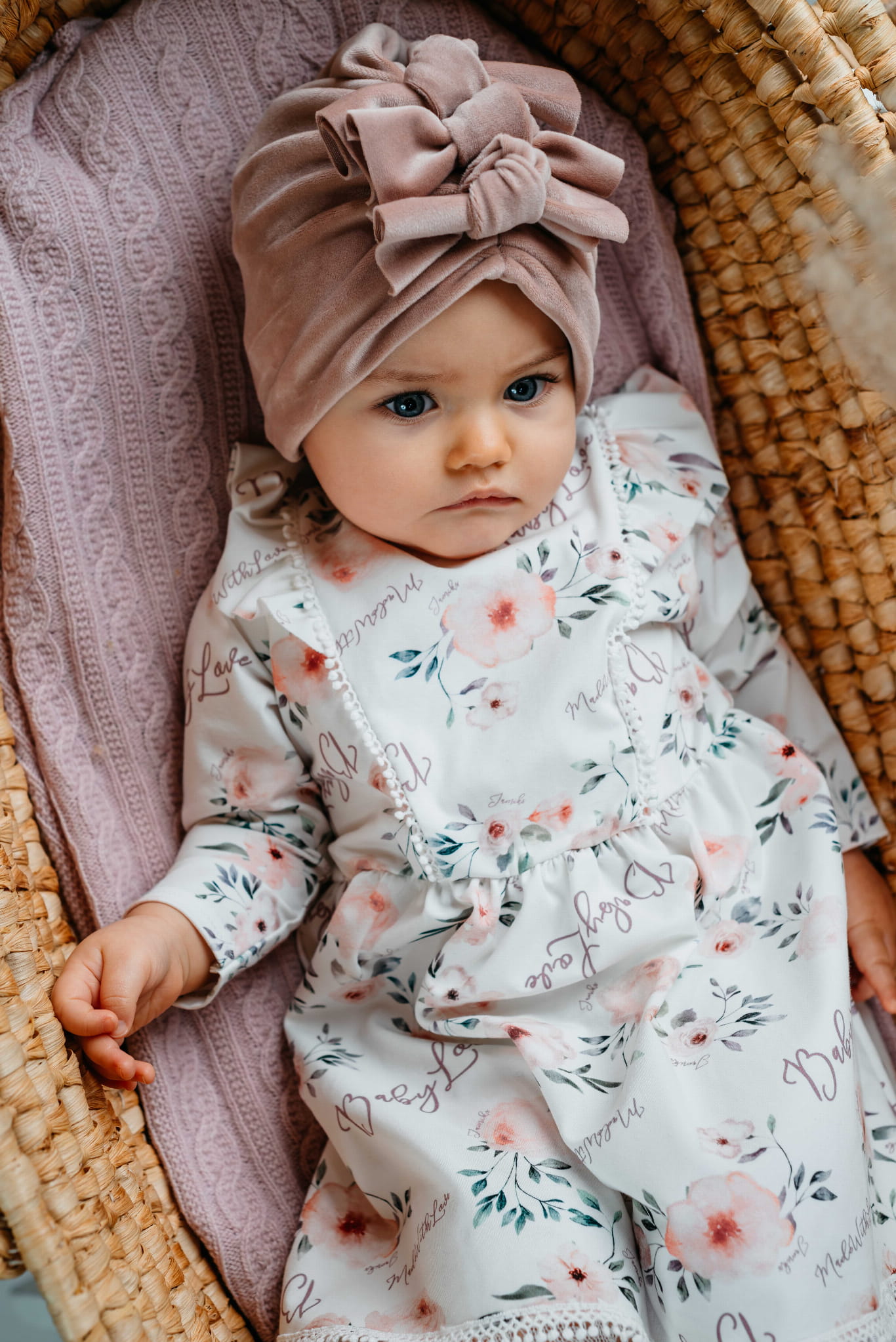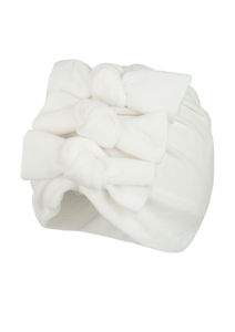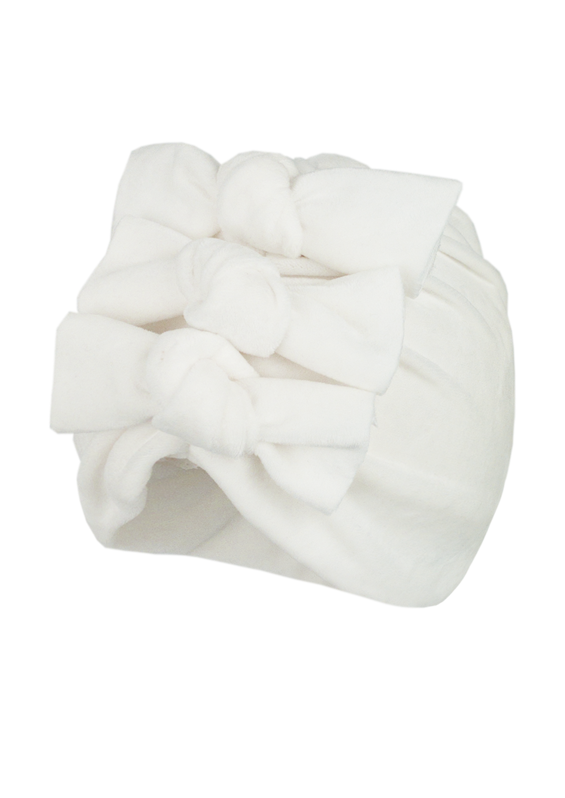 Welurowy turban z kokardami, podszyty bawełnianą podszewką - idealny na chłodniejsze dni.