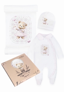 Zestaw niemowlęcy pajacyk, otulacz i czapeczka NEIA biały