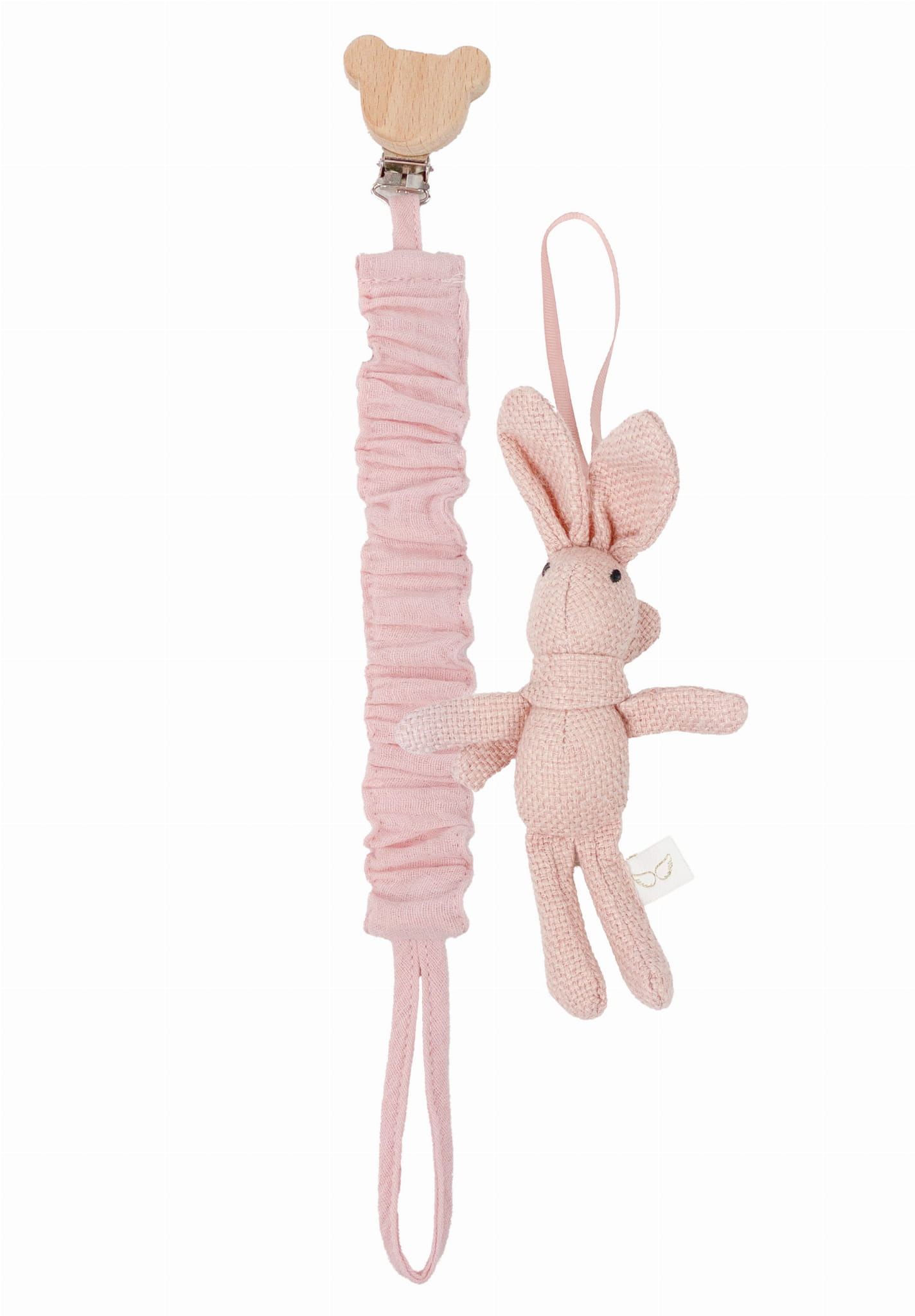 Zestaw pieluszki muślinowe + zawieszka do smoczka + maskotka LOU organic Róż Naja